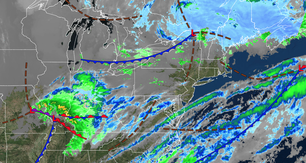 An area of low pressure will produce periods of rain, heavy at times, along with windy conditions in the evening. Temperatures will range from the upper 30s to lower 40s for lows and upper 50s to mid-60s for highs.