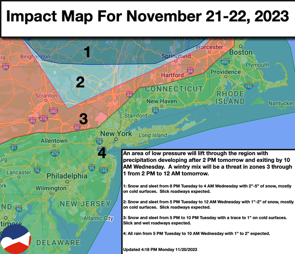 A disruptive storm will invade the region just in time for one of the busiest travel periods of the year, with heavy rain, strong winds, and a wintry mix for higher elevations. Chilly but tranquil conditions return for Thanksgiving.