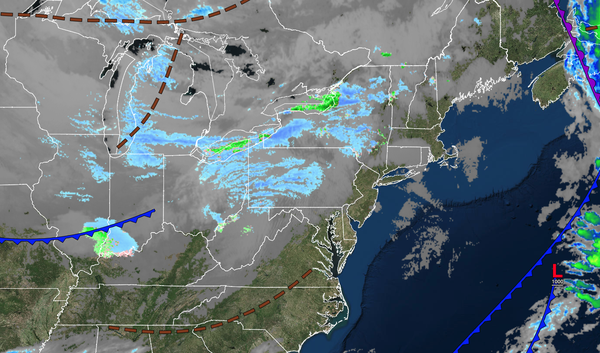 An area of low pressure will approach the region with increasing clouds in the morning, followed by scattered showers in the afternoon and evening. Winds will be from the