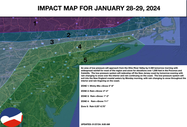 Periods of rain will continue along the coast, while snow will continue in the Poconos, Catskills, Hudson River Valley, and the Hudson Highlands.