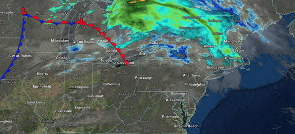 A cold front will move through the region with scattered