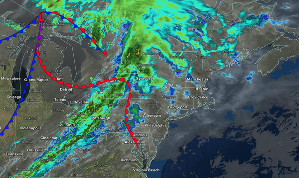 area of low pressure will produce periods of showers in the afternoon and evening. Winds will back to the southeast at 10 to 20 mph. High temperatures will range from the mid to upper 50s over the interior, lower to mid-60s in the New York City metropolitan areas and northern Philadelphia suburbs, and mid to upper 60s in the Philadelphia metropolitan areas and southern New Jersey.