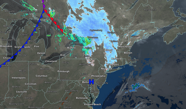 A warm front will produce scattered clouds and isolated rain/snow showers. Winds will be from the west at 1 to 5 mph. High temperatures will range from the lower to mid-40s over the interior, mid to upper 40s in the New York City metropolitan area, and upper 40s to lower 50s in the Philadelphia metropolitan area.