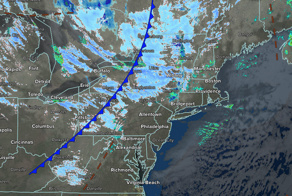 snow may mix with the rain in the Poconos and Catskills, resulting in minor snow accumulation of up to 1" on cold surfaces. Winds from the southwest at 5 to 15 mph. High temperatures will range from the upper 30s to lower 40s over the interior, mid to upper 40s in the Delaware River Valley, and lower to mid-50s along the coast.