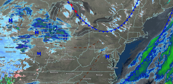 An area of low pressure will produce a wintry mix of snow and rain. Low