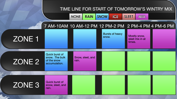 An area of low pressure will produce a wintry mix of snow and rain. Low