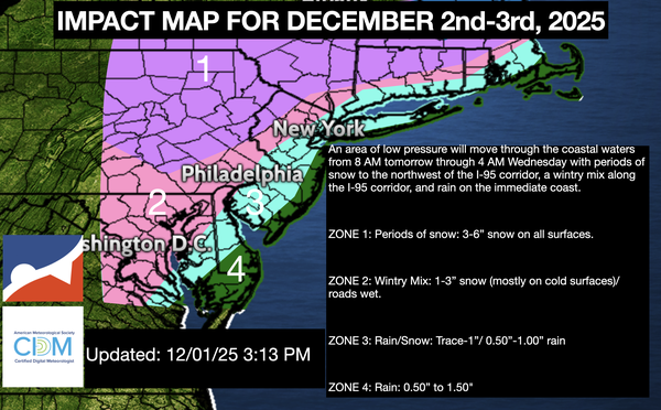temperatures will range from the mid-10s to lower-20s over the interior, mid to upper-20s in the Delaware River Valley, and upper-20s to mid-30s along the coast. High temperatures will range from the mid to upper 30s over the interior and upper 30s to lower 40s along the coast.
