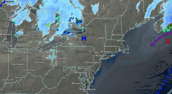 An area of low pressure will produce periods of snow for most of the region and a wintry mix of snow and rain on the southern New Jersey coast. Low temperatures will range from the