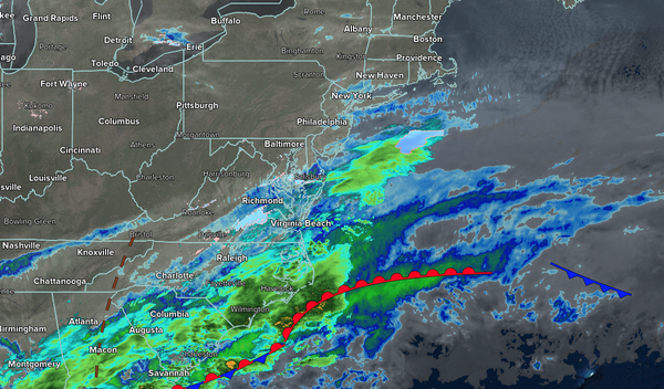 An inverted trough will produce the threat of scattered snow showers, sleet, and freezing drizzle through early tomorrow morning, producing the threat of slick roadways and other surfaces.