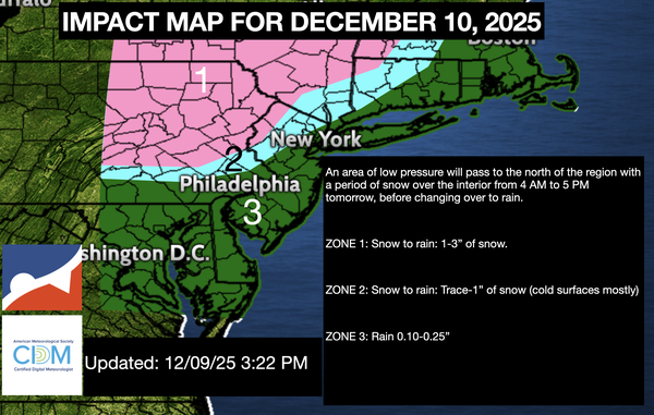 interior, mid to upper 10s in the suburbs, and upper 10s to lower 20s in urban areas. High temperatures will range from the mid to upper 10s over the interior, lower to mid-20s in the Delaware River Valley, and upper 20s to lower 30s along the coast.