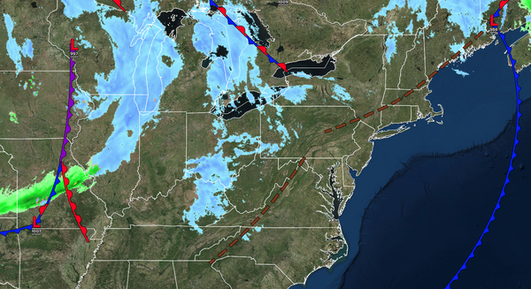 A cold front will move through the region with a mix of rain and snow along the coast and light snow along and northwest of the I-95 corridor. Winds will veer from the south to the west at 5 to 15 mph.