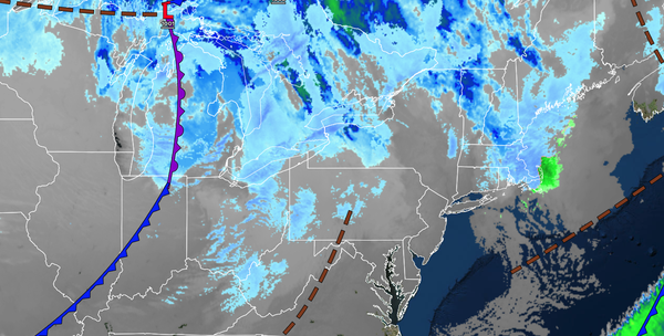 An area of low pressure will produce periods of snow. Low temperatures will range from the single digits below zero