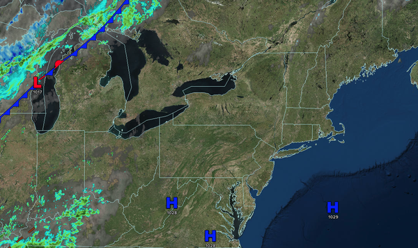 High pressure will exit the region with increasing clouds. Winds will be from the southwest at 5 to 15 mph. High temperatures will range from the lower to mid-70s over the