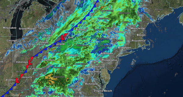 The cold front will move through the region with periods of showers, heavy at times, through the morning. The showers will exit from northwest to southeast in the early afternoon, followed by clearing skies. Winds will veer to the northwest at 5 to 15
