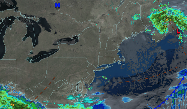 High pressure will produce scattered clouds. Winds will be from the northeast at 5 to 15 mph.