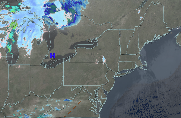 High pressure will build into the region with clearing skies. Low temperatures will range from the lower to mid-20s