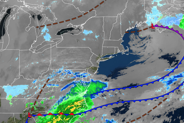 An area of low pressure will produce a period of light snow with a wintry mix. Low temperatures will range from the lower to mid-20s. High temperatures will range from the upper 20s to lower 30s over the interior and New York City metropolitan area and lower to mid-30s in the Philadelphia metropolitan area.
