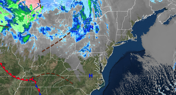An area of low pressure will approach the region with scattered rain and snow showers. Low