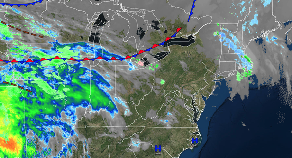 A warm front will approach the region with increasing clouds. Winds will be from the southwest at 1 to 5 mph. Low temperatures will range from the lower to mid-30s.