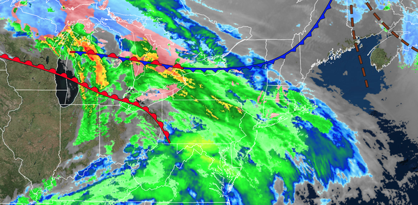An area of low pressure will approach the region with a wintry mix changing to rain over the interior and rain