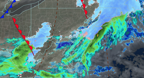 An area of low pressure will pass to the south with
