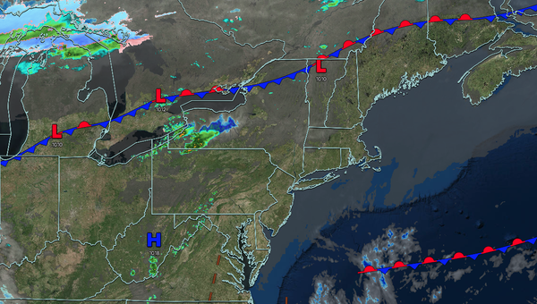 A cold front will move through the region with scattered