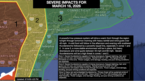 interior, mid to upper 30s in the New York City metropolitan area, and upper 30s to lower 40s in the Philadelphia metropolitan area.