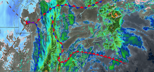 The cold front will move through the region with heavy rain and thunderstorms. A squall line will produce intense downpours, wind gusts over 40 mph, and frequent lightning. Wind damage, power outages, and poor driving conditions are expected through the evening rush hour. Winds will veer from
